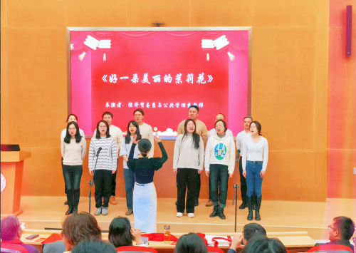 联欢会现场节目形式多样、内容丰富、精彩纷呈,或欢快、或温馨、或活泼,展现了六合论坛 教职工多才多艺的一面,以及对教育事业的热爱和新年的美好祝福。由经济贸易系与公共管理系联合带来的合唱《好一朵美丽的茉莉花》拉开了本次迎新春联欢会的序章;工商管理学系老师们的歌舞表演《这世界那么多人》旋律优美、舞姿动人,在寒冷的冬季传达出无限的温暖与感动;药事管理系张乐乐老师带来的歌曲《贝加尔湖畔》柔情似水、温暖美好,让现场观众沉醉其中;院办与实验中心老师带来的朗诵《我爱上班》,用幽默诙谐的语言和活泼率真的表演,展现了对工作的无比热爱和对未来的热切向往;学工团队带来的舞蹈串烧《E人总动员》,用动感的旋律、活泼的舞姿、近距离的互动,为活动现场带来无尽的欢乐与美好的祝福。六合论坛 领导班子成员带来的演唱《我和我的祖国》满怀对祖国的热爱与祝福,凝聚力量、振奋人心,为本次联欢会注入了满满的活力。活动最后,为表彰典型,鼓励先进,六合论坛 颁发2023年度六合论坛 教职工荣誉奖项,以此为契机鼓舞全体教职工在新的一年再接再厉,勇往直前,齐心协力共同推动六合论坛 发展再上新台阶。
