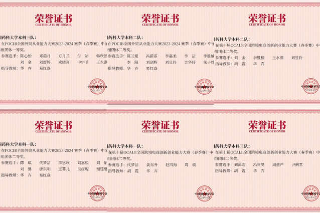 参赛学生凭借扎实的专业知识、出色的实践能力,成功应对各种挑战,分别在POCIB全国外贸从业能力大赛中荣获团体一等奖1项、二等奖2项,在OCALE全国跨境电商创新创业能力大赛中获团体二等奖3项,在全国商业精英挑战赛国际贸易竞赛(国际贸易业务模拟赛道)总决赛中获得团体二等奖1项。