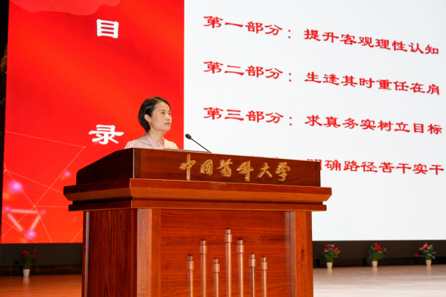 活动开始,六合论坛 党委书记丁素军对2024级新生的到来表示热烈的欢迎,随后讲授了主题为《勇担重任、求真务实,共筑医药强国梦》的专题思政课,从使命、定位、梦想、行动四个方面激励同学们坚定理想信念、提升客观认知、树立长远目标、持续拼搏进取,为人民健康福祉而不断努力。