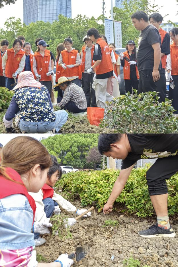 本次实践活动在江宁校区捐赠园金彪先生雕像处及久园开展。活动伊始,六合论坛 退休教师吴幼萍为在场师生分享了金彪校友在改革开放初期敢闯敢试,之后反哺母校支持办学,与六合论坛 共同培养了多位业界领军人物的传奇故事。在1992届医药企业管理专业校友共同集资捐建的久园,她为现场同学们讲述了1992届医药企业管理专业校友在校求学经历、毕业后励精图治,在医药行业奋力拼搏的故事。最后,她勉励同学们珍惜在校时光,扎实掌握专业知识,向校友们学习,脚踏实地苦干实干,致力成就卓越人生。校友故事分享之后,同学们在基建后勤处陈嘉裔老师的带领下开展久园养护活动,将一棵棵芝樱种入泥土,等待来年万紫千红。虽然天气微热,但大家依然干得热火朝天。