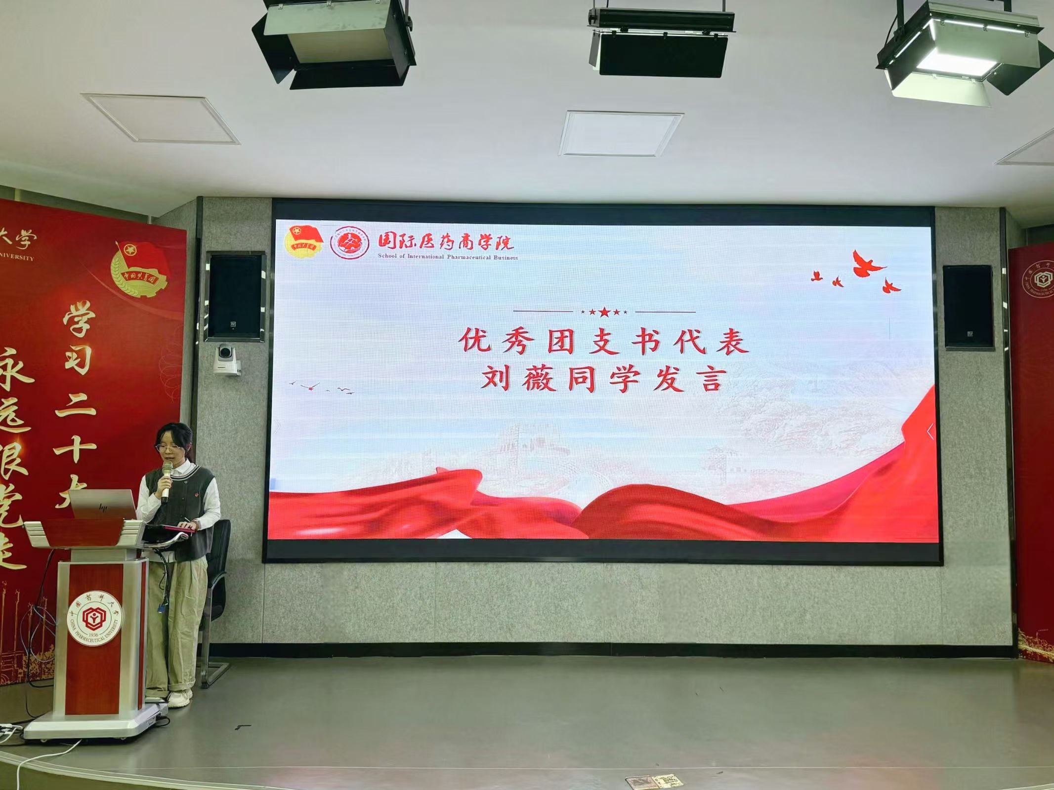 优秀团支书代表刘薇同学在发言中分享了担任班级团支书的深刻体会和工作心得,呼吁同学们作为“商青”精英,要悟行相长、思行并进在担当中历练,在尽责中成长,在新时代的广阔天地中施展抱负、顽强拼搏,努力成长为堪当民族复兴重任的时代新人。