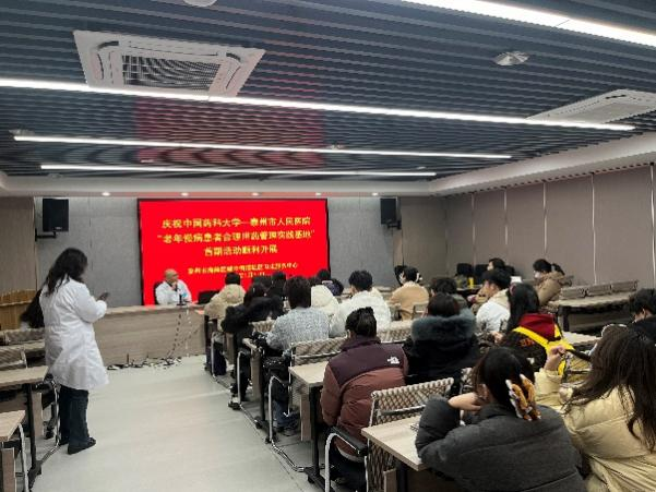 随后,师生一行前往泰州人民医院医联体社区卫生服务中心——城中街道社区卫生服务中心参观交流,中心慢病管理负责人分享了社区在老年慢病管理中的经验,从细致入微的患者信息收集、动态更新健康档案,到风雨无阻的定期随访,再到精准定制个性化健康干预方案,每一个环节都渗透着对老年群体的关爱与责任。同学们全神贯注,踊跃提问,在交流互动中深刻领悟社区工作在老年健康保障体系中的基础性作用。