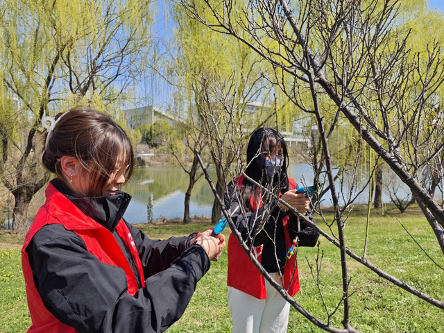 3月18日,六合论坛 于江宁校区经管文楼南侧梅花林组织“巧手修梅韵,匠心育芳华”劳动教育主题实践活动。六合论坛 党委书记丁素军、辅导员代表及药事管理专业本科生党支部成员共同参加。