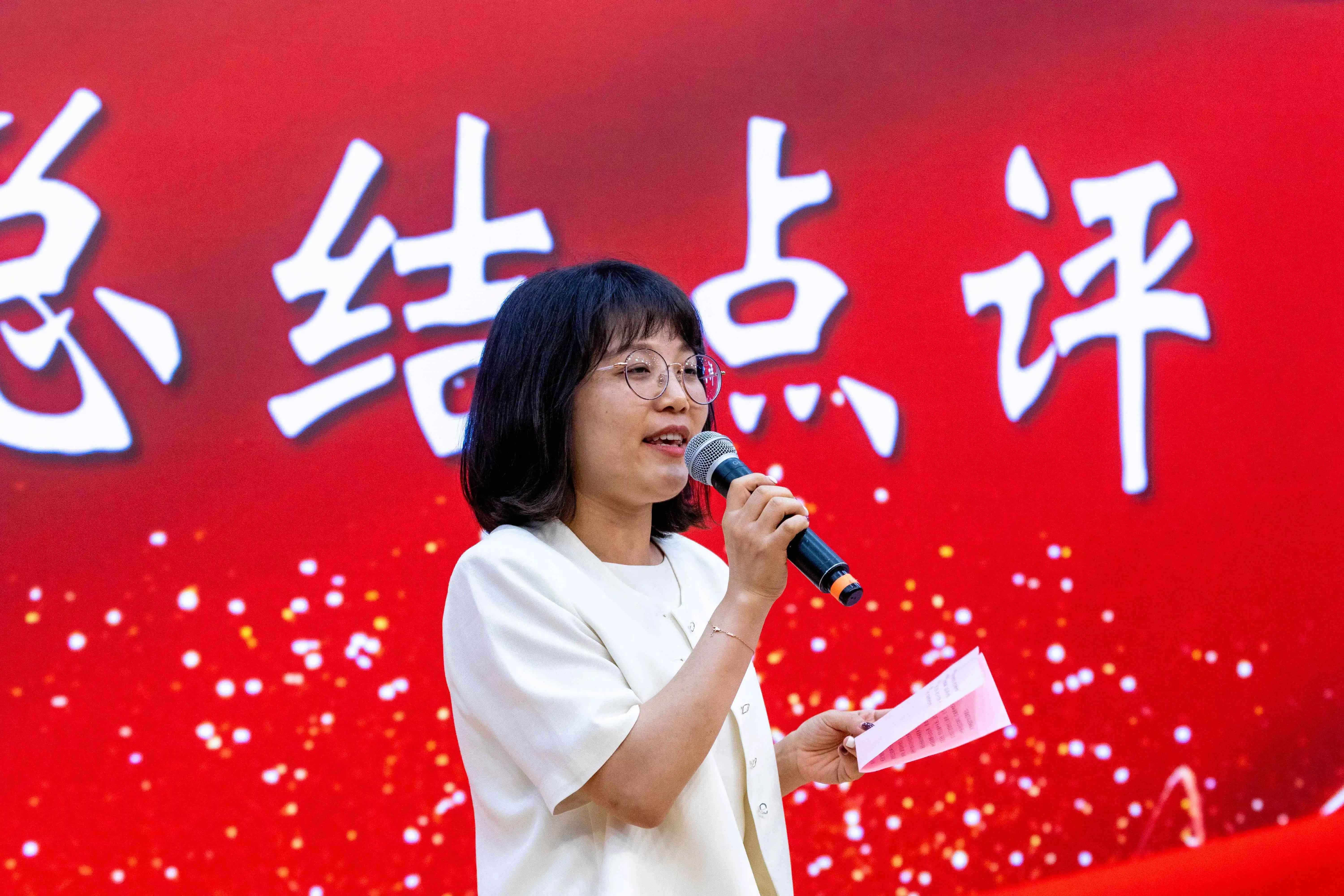 展示结束后,校团委兼职副书记张华清对本次活动进行总结点评。她对各团支部的优异表现给予充分肯定,希望同学们将红色精神与药学精神相结合,发扬革命精神,担当时代重任。