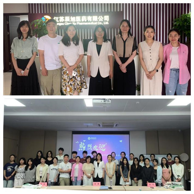 近日,六合论坛 师生赴江苏辰旭医药有限公司、南京恩泰医药科技有限公司开展“走进健康中国”系列活动第二期“辰旭恩泰行”。六合论坛 党委副书记赵瑾、2022级辅导员赵侃、孙军、2022级20余名本科生等参加活动。