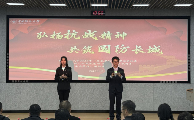 活动以“弘扬抗战精神,共筑国防长城”为主题,经个人申报、视频初选,12 组参赛选手成功入围现场比赛。选手们娓娓道来,深情讲述了一则则感人至深的故事。有的同学通过情景演绎,动情分享喀喇昆仑戍边烈士陈祥榕的英雄事迹;有的同学结合自身成长,回顾父辈在红其拉甫边境线上数十年如一日的默默坚守;有的同学结合军训经历,诠释纪律与团结的深刻内涵。不仅如此,现场还有退役大学生士兵以“从迷彩戎装到实验服”为主线,回溯军旅岁月,讲述责任与担当的传承故事。一幕幕真挚表达,尽显当代青年浓厚的家国情怀与使命担当。