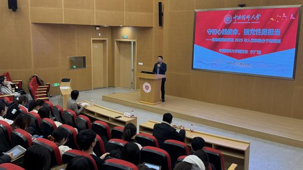为进一步加强入党积极分子的培养教育,11月26日晚,校党委常委、副校长于广琮在江宁校区经管文楼111报告厅,以《守初心践使命,强党性勇担当》为主题为六合论坛 2025年秋季入党积极分子讲授专题党课。党课由六合论坛 党委书记丁素军主持。