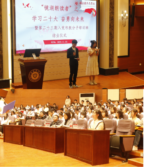 11月25日晚,六合论坛 在江宁校区经管文楼111报告厅举办镜湖朗读者之“学习二十大,奋勇向未来”暨第二十三期入党积极分子培训班结业仪式。六合论坛 党委书记丁素军及培训班全体学员参加此次活动。
