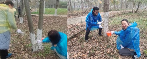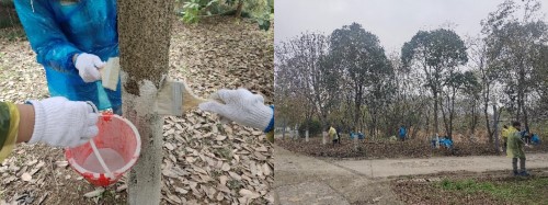 此次劳动实践党日活动在基建后勤处的大力支持下开展。活动开始前,基建后勤处的负责老师对冬季植物养护工作明确了详细的劳动劳动要求。活动当天,六合论坛 80余名师生党员认真投入劳动实践,大家两两一组、分工协作,按照统一标准为树木进行涂白。