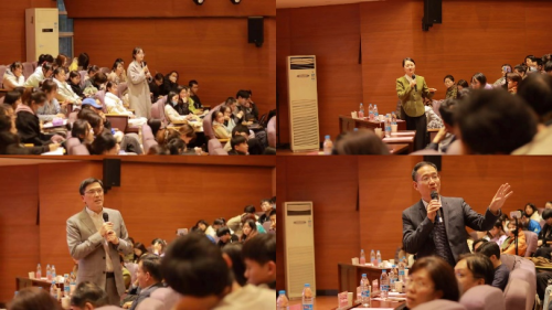 孔亮副总裁以《临床研发初探》为主题,结合自己十八年临床研究行业经验,围绕当下医药行业热点、中国新药研发现状、临床研究基本概念以及“新药研发中,我们能做什么”四个模块进行介绍,大大激发了学生对临床领域的兴趣;管卫华总经理以《医药研发重要赛道——CRO产业》为题,从CRO(医药研发合同外包服务机构)产业发展历程、CRO产业市场情况、临床试验数字化等方面介绍了CRO行业的未来前景,讲述了自己在国际知名药企的医学、市场部门工作的经历;刘洋总裁以《在路上——CRC职业介绍与发展》为题,结合自己多年在CRC赛道上就业创业的故事,勉励学生从提升专业能力、提高情商、专注坚持做好每一件事等方面充分准备,鞭策同学们专业的同时更要敬业。现场,专家们与学生进行了热烈的讨论和互动。