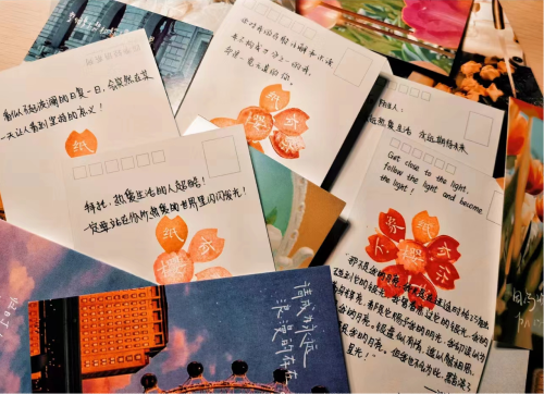 落樱烂漫几多时,樱霞晚钟予万象。参与活动的各位同学手持明信片走进樱花苑,以文字的力量向与自己交换明信片的陌生人传递温暖。或是一句真挚的祝福,或是一段优美的诗句,或是一句富有哲理的名言,这些生动的文字流于笔尖,跃然纸上,犹如一道光驱散了凛冬,带着春日的和煦和温暖来到了陌生的彼此手中,为同学们的校园生活增添了一份诗意的浪漫。同学们通过赏樱花、写祝福、换心意等一系列活动集齐“只因有你,爱予万象”的盖章,温暖彼此,在春日校园中寻找快乐。