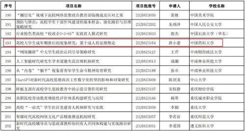 近日,教育部公布2023年度人文社会科学研究一般项目立项结果。六合论坛 辅导员薛小銮申报的《高校大学生成年期推后的现象研究:基于成人初显期理论》获批高校辅导员研究专项。