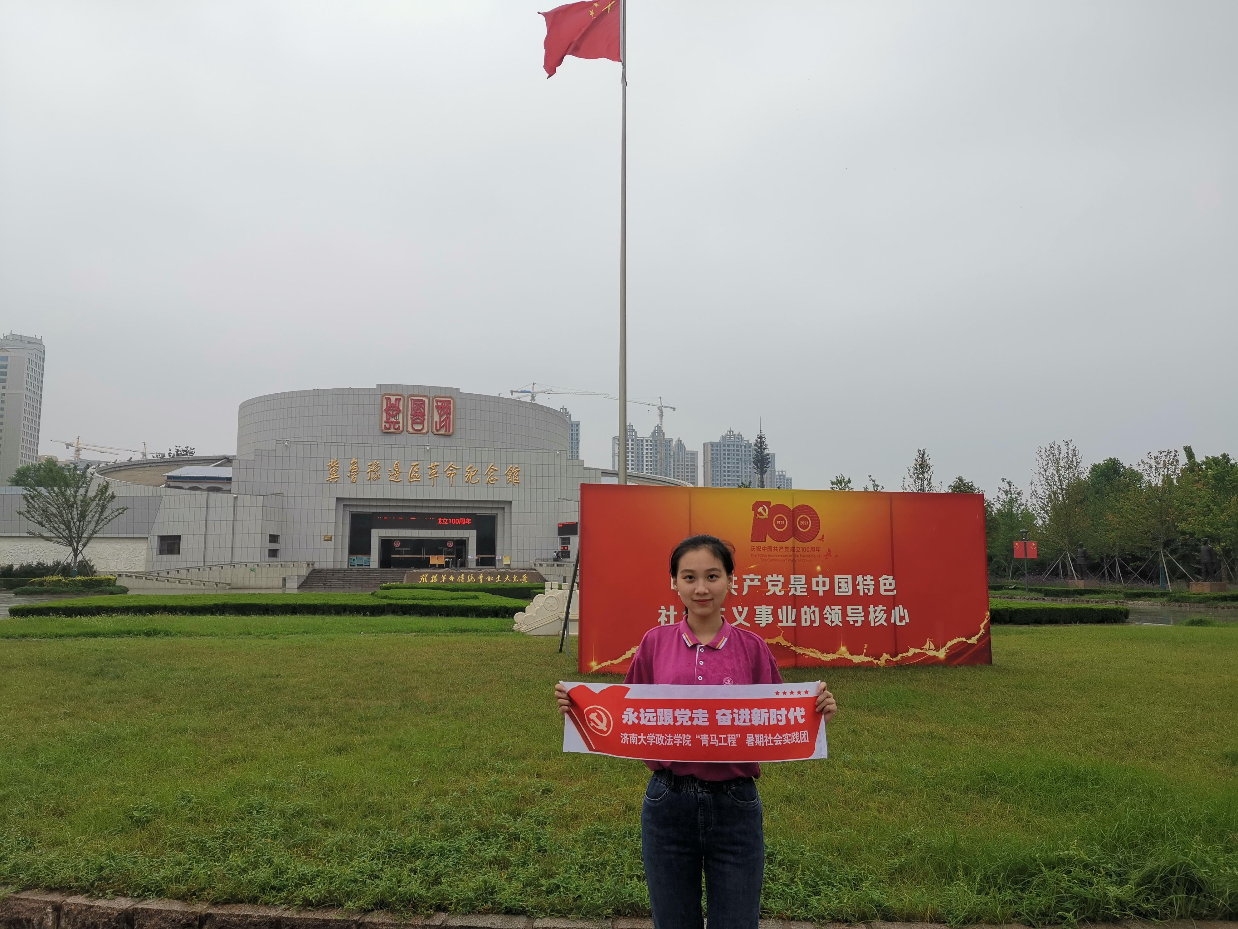 奋进是最好的致敬。本次社会实践活动是一堂生动的专题党课、一次深刻的思想洗礼,进一步激发了学生爱党爱国爱社会主义的情感并激励他们为之奋斗。实践队员表示作为济大政法学子,在党史学习教育中要主动学、深入学,将党史学习教育与专业知识学习结合起来,不断提升自身理论水平和专业素养,同时作为青年马克思主义者培养工程骨干培训班的学员,更要坚定马克思主义信仰,以青春奋斗践行“请党放心,强国有我”的铮铮誓言,迎着党旗飘扬的方向砥砺前行,在不懈奋斗中绽放绚丽之花。