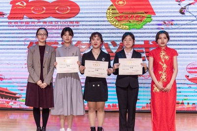 团委书记晁素娜进行点评,希望大家在日常生活中加强党史学习,坚定理想信念。最后,评委们为三名一等奖,四名二等奖,五名三等奖同学颁奖并合影留念。