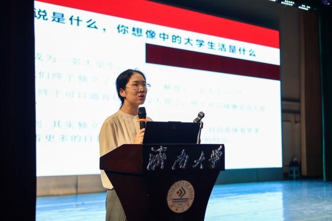 新疆籍少数民族学生与民族工作队伍情况、“石榴籽”工作室等方面展开讲解。此外,迪妮尕尔·艾尔夏提老师向新生提供了2023届本科毕业生升学、就业数据,勉励新生立足当下,及早确立发展目标。
