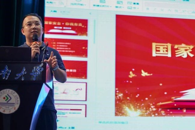 2022级辅导员沈正浩老师从全民国家安全教育日、什么是国家安全、提升安全意识维护国家安全等角度向新生阐述了国家安全相关内容。同时,沈正浩老师以案例形式分享了电信诈骗防范知识,引导学生增强防诈防骗能力。