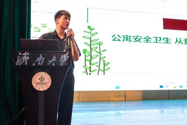 公寓管理相关规定、公寓安全管理奖励与处罚、学生公寓安全卫生检查评分标准等方面展开讲解,并以优秀宿舍典型激励新生努力创建安全舒适、整洁美观、文明健康的生活园地。