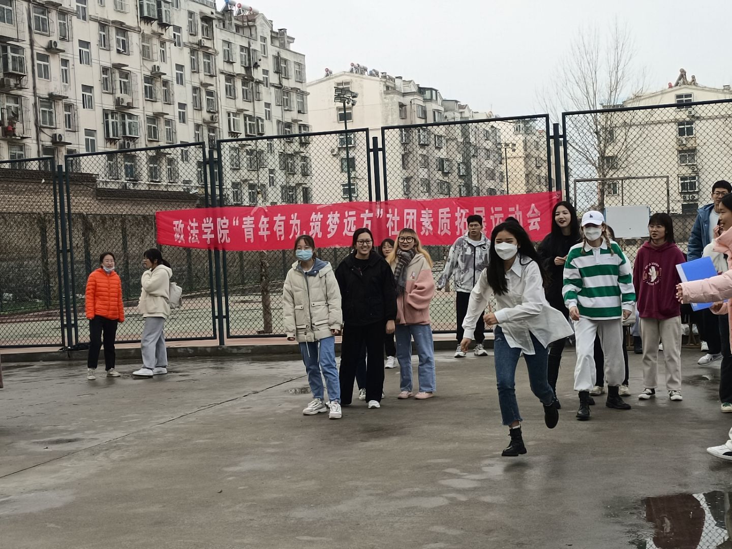 学生会在南苑灯光篮球场举办社团素质拓展运动会,来自九个社团的代表成员参加活动。