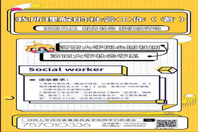 学生课余生活和宣传社会工作、传递社工精神,由济大同心圆社会工作协会和社会学系共同举办的“我所理解的社会工作(者)”专题活动于近日正式开始。