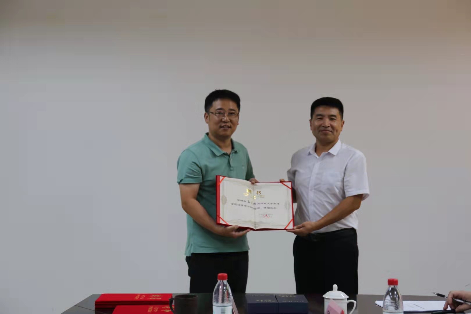 教师代表与山东豪德律师事务所副主任孙天锋、副主任吕洪果、诉讼中心主任王晓倩、常法中心执行负责人吴绍祥出席签约仪式。