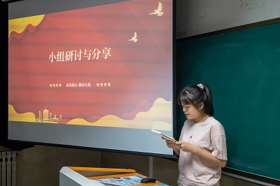第四环节,各小组进行学习研讨与分享。每个小组代表与大家分享自身学习习近平总书记“七一”重要讲话精神的心得感悟。学员们发言各有侧重,从党史学习教育、实践锻炼才干、伟大建党精神以及新时代青年的责任担当等方面分享了自己的看法。刘若彤、马旭龙、李晓菡同学从党史学习教育角度出发,认为学好党史能够帮助深刻领悟中国共产党为什么能,中国特色社会主义为什么好,马克思主义为什么行。在新时代,以史为鉴,砥砺前行,是我们向着实现中华民族伟大复兴中国梦前行的必要条件。王艳辉同学从伟大建党精神角度出发,向学员们介绍了继承发扬党的光荣传统的必要性。作为青马班的成员,更是应该赓续红色血脉,传承红色基因。王相宇、田茂泉、马欣宇几位同学则从新时代青年责任与担当角度出发,表示未来属于青年,希望寄予青年。作为新时代青年,我们生逢其时,重任在肩。要树立“为天地立心,为生民立命,为往圣继绝学,为万世开太平”的远大理想,将小我融入大我,让青春之花绽放在祖国最需要的地方。
