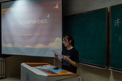 “青马工程”暑期社会实践团的代表,结合自身实践经历,向大家分享了自己参与暑期实践的心得体会。参与制作红色宣讲微视频的彭郑媛同学表示,通过重走红色足迹,自己对于王尽美烈士的事迹有了更深的了解,自己作为青马班的一员更是应该赓续红色血脉,传承红色基因。参与“青鸟计划”“返家乡”实践的蒋万水同学分享了自己在家乡人民法院的实习经历。他表示,通过切身的感受以及实际操作,自己对于法学专业有了更深的自豪感。参与济南市仁贤社区实践的王炳坤同学表示,社区活动看起来只是一些平凡而又琐碎的小事,但正是这些平凡的点点滴滴慢慢改善了居民的生活。通过此次锻炼,自己获得了多方面的成长。几位学员通过讲述自身实践故事,传递出青春力量,彰显新时代青年风采。
