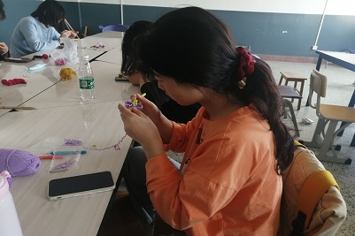 阳光先锋青年志愿者协会的志愿者们在四教503教室举办了“情系绿缘,为爱钩针”活动。