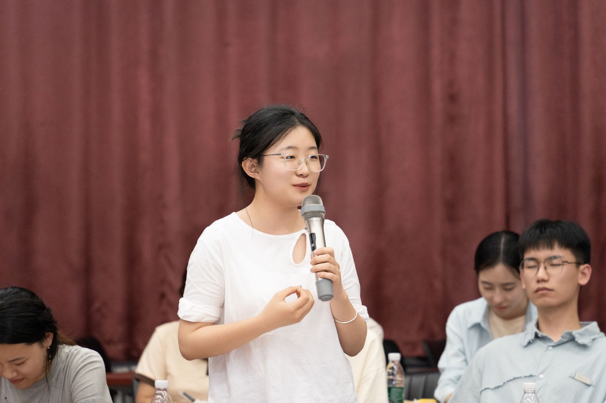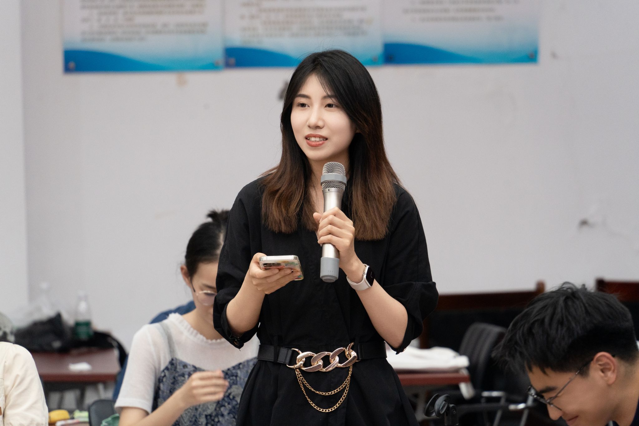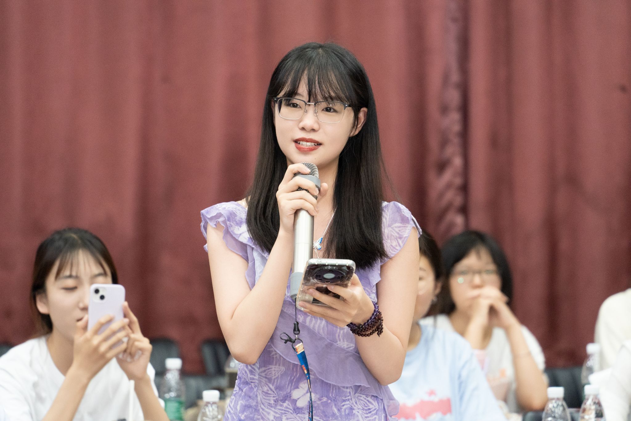 座谈会结束后,由庄鑫缘和乔美虹同学主持欢送会,21级、22级和23级的同学们带来了精彩的节目。歌曲《我的未来式》《你从未离去》《我想要》表达了对学长学姐们的真挚祝福;诗歌朗诵《终于,还是要说再见了》《做最好的自己》感人至深,传递了不舍之情;一曲合唱《送别》,寄予了深情的告别;最后,大屏幕播放由低年级同学们精心拍摄的祝福视频。