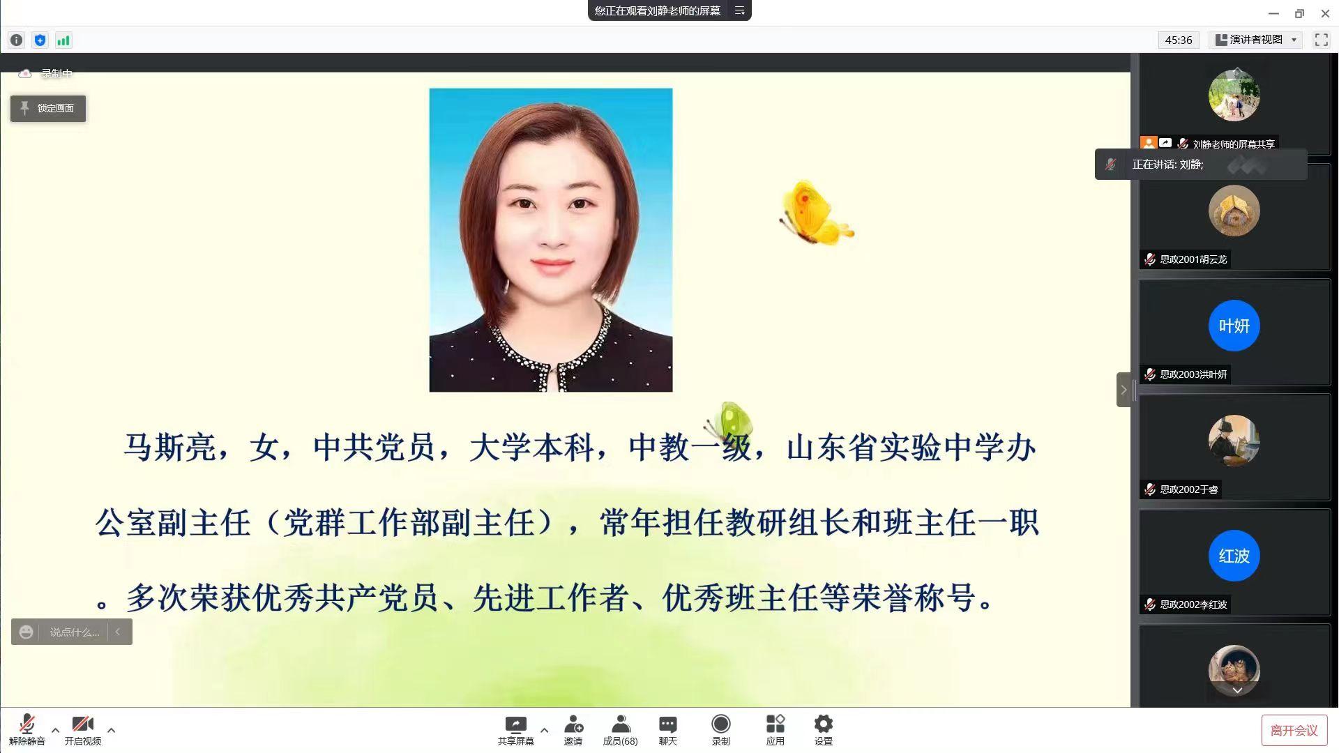 邀请了省实验中学思政课高级教师马斯亮担任首场报告主讲。报告由政治系教师刘静主持,思政专业2020级全体学生参加。