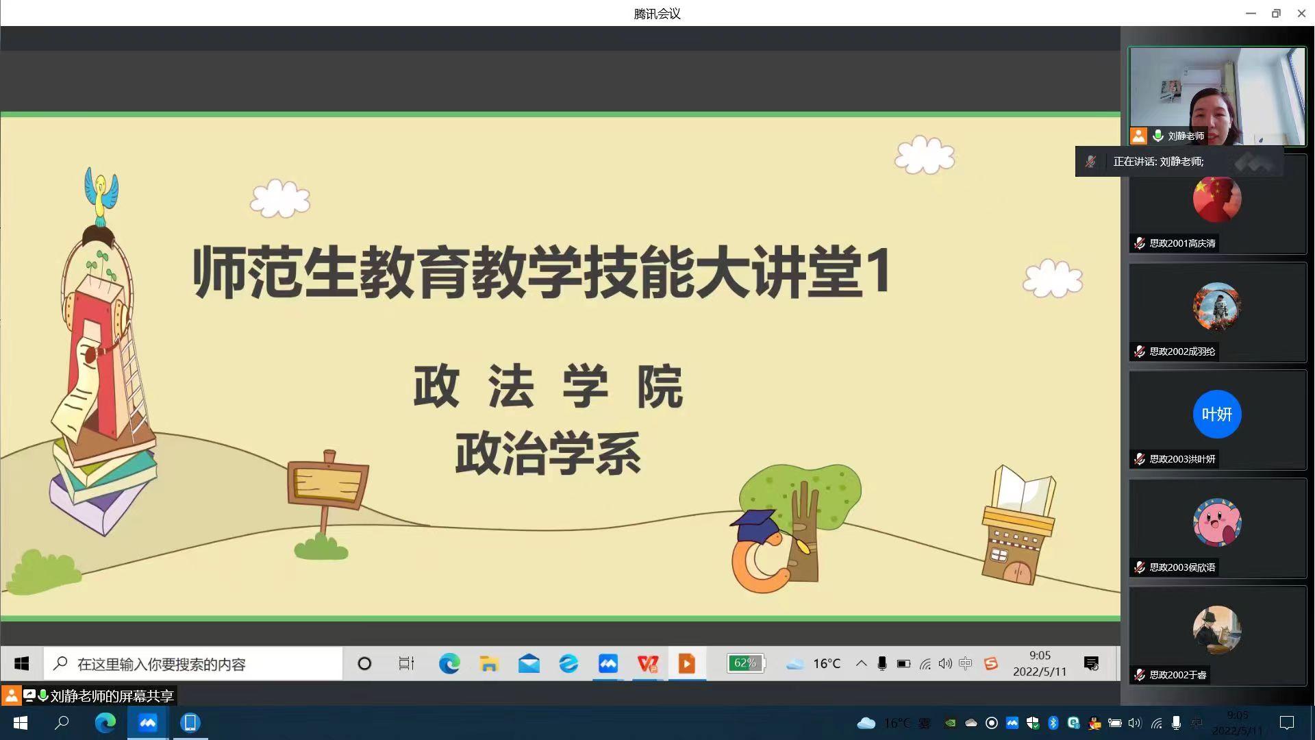 会前,刘静向马斯亮老师表达了热烈的欢迎和衷心的感谢,并对此次见习安排进行了详细介绍。会上,结合思政专业来春花同学的课堂展示,马老师立足自己的工作实际,分别从课前、课堂、课后三个维度就“如何上好一堂课”给予了专业点评和具体的指导建议。课前备课,马老师提出了“五备”法,即动态上的备学生、备老师(自己),静态上的备课标、备教材、备教法;课堂教学,要紧紧围绕“创新”和“燃点”两个关键词;课后复习,要突出“温故知新”,强调“巩固提升”。马老师还就同学们的问题和疑惑进行了耐心细致的线上问答交流,有针对性的强化了讲课技能的重点、难点。