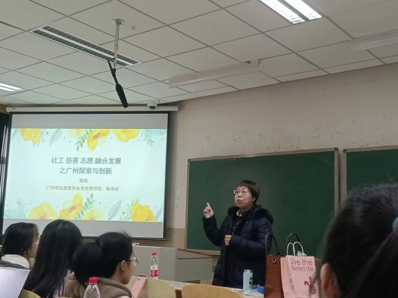 邀请广州市志愿者协会党支部书记和秘书长、2005级社会工作优秀校友甄鹤,在10教411教室举行社工专业认知实习专题讲座——“社区、慈善、志愿融合发展之广州探索与创新”。本次讲座由六合论坛