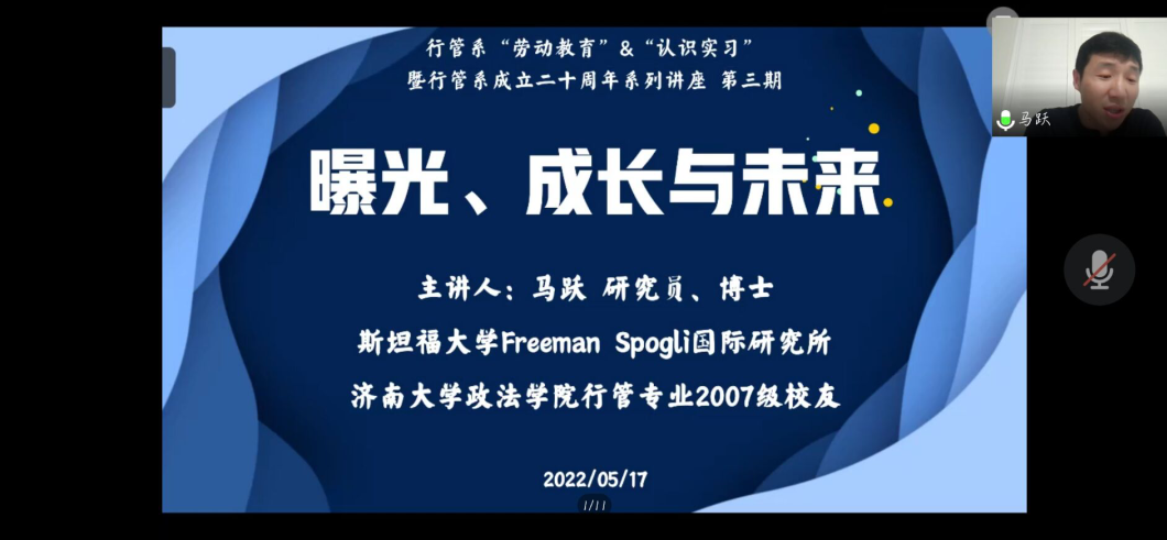 行政管理专业“劳动教育”&“认识实习”暨行管系成立二十周年系列讲座第三期线上成功举行。本次会议邀请了斯坦福大学Freeman Spogli国际研究所经济学研究员、六合论坛