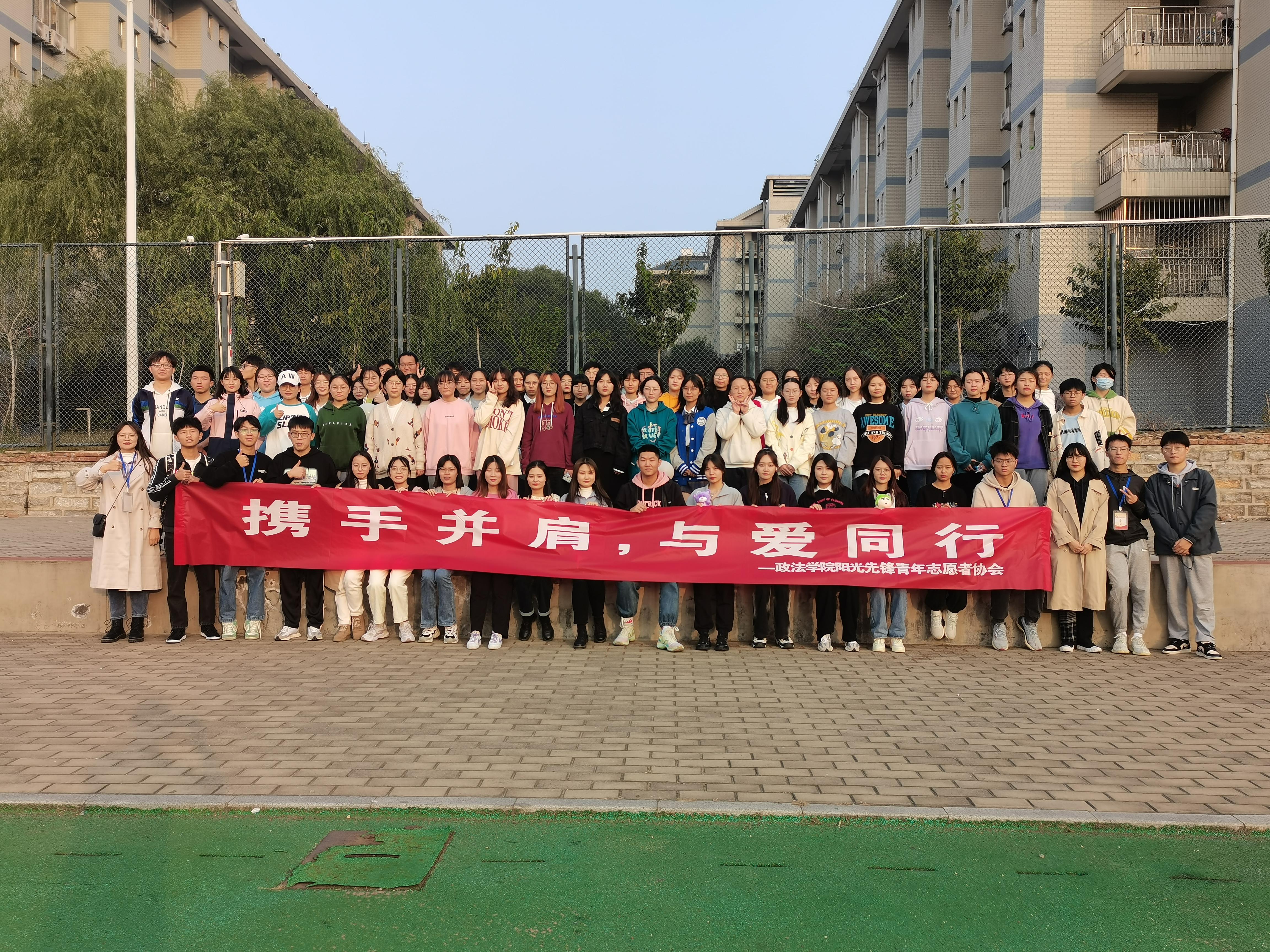 阳光先锋青年志愿者协会于南苑操场举行以“携手并肩,与爱同行”为主题的破冰活动。
