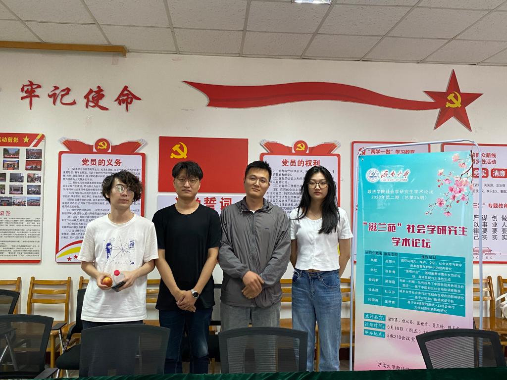 2023年第二期“滋兰苑”社会学研究生学术论坛在3教219会议室成功举办。本次论坛邀请梁丽霞教授、张世青教授、杜以芬副教授、曹玉梅博士、陈玉成博士担任点评嘉宾,院研究生会竞赛部孙浩然同学担任主持,社会学研究生参加了本次论坛。