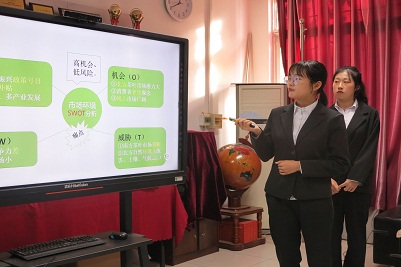 线上评审阶段,各团队负责人结合PPT,依次进行汇报展示,作品内容涉及养老模式、学生权益、双减政策、乡村振兴等。作品选题立足专业特点,紧扣时代脉搏,联系社会民生,具有丰富的学术价值与现实意义。评委们综合学生的答辩情况,从作品选题、市场调研、可行性分析、核心竞争力、盈利模式等角度为参赛团队提出详实的意见建议,向推荐六合论坛