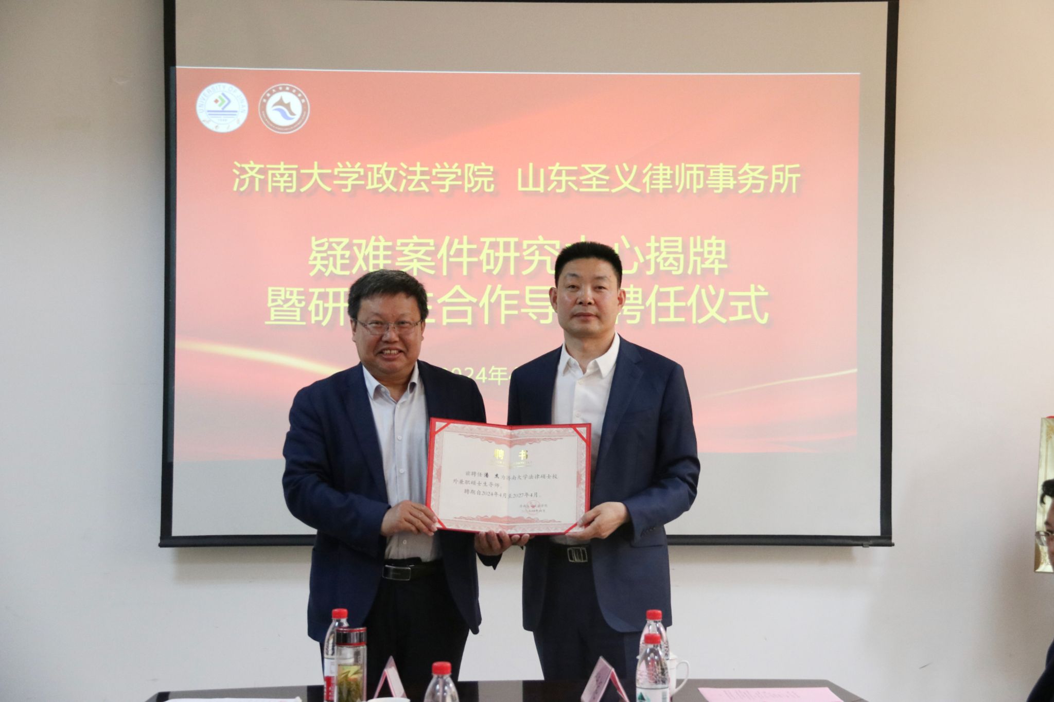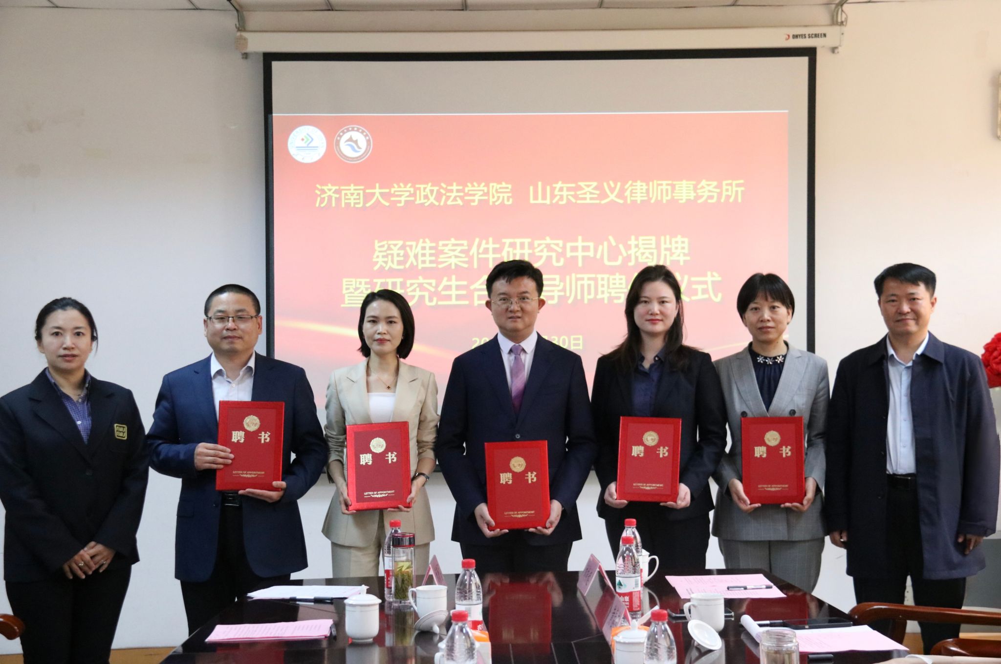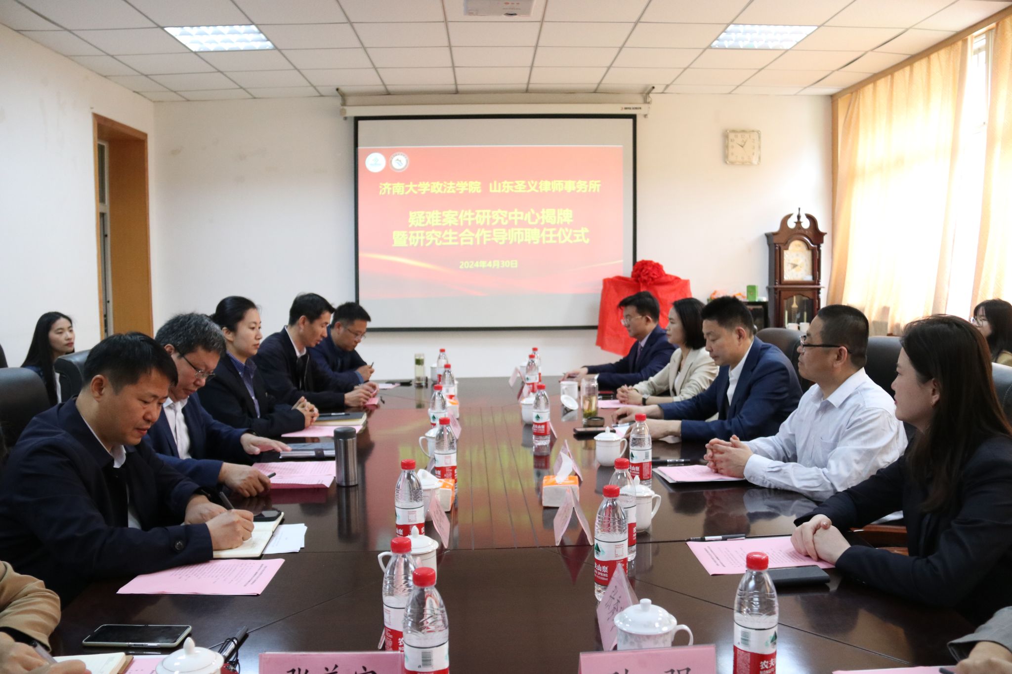 与山东圣义律师事务所于第三教学楼213会议室举办疑难案件研究中心揭牌暨研究生合作导师聘任仪式。济南市律师协会会长、山东圣义律师事务所党支部书记、主任潘杰,副主任王培国、黄春燕、张珊珊、刘振起、张秀玲,六合论坛