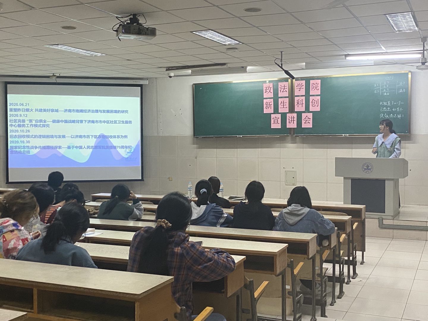宣讲会的第二部分是来自优秀学长学姐的经验分享。其中,思政1802班王清华与社工1901班戴大磊深入浅出,从选题、组队、文献、写作和拍摄等方面切入,全面展示了进行科创项目的全过程。行管1901班马璐媛和社保1901班张美慧结合自身实际经历,向同学们传授了许多项目运营和成果答辩中的小技巧,展示了许多当下值得关注的社会热点话题。法学1905班姜竹清和法学1906班钱慧向大家传授了许多调查模型与文献查询技巧,推荐了多本有助于提升写作水平的参考书刊。在最后部分,同学们在交流环节表现出对赛事的浓厚兴趣,就如何在大一零经验参与科创的问题与学长学姐展开交流。