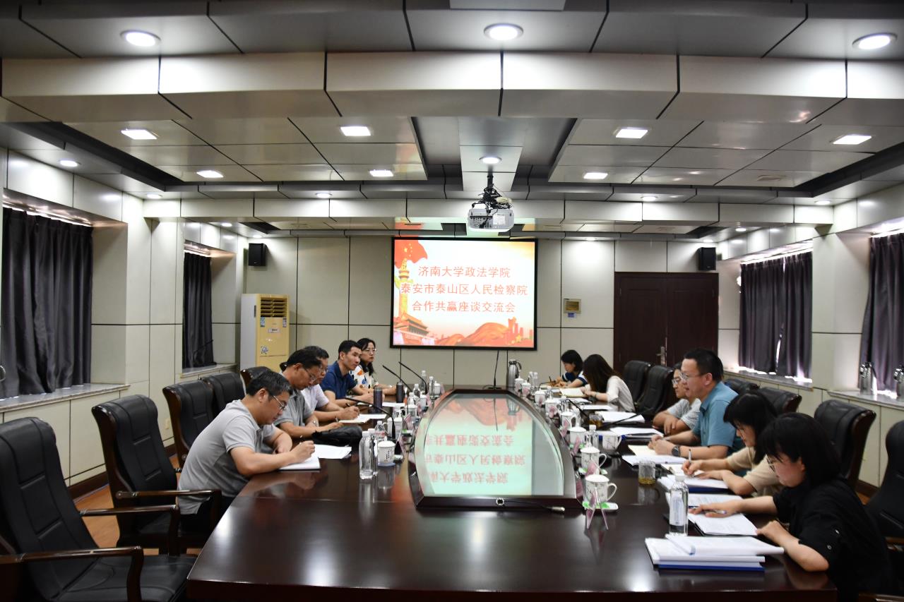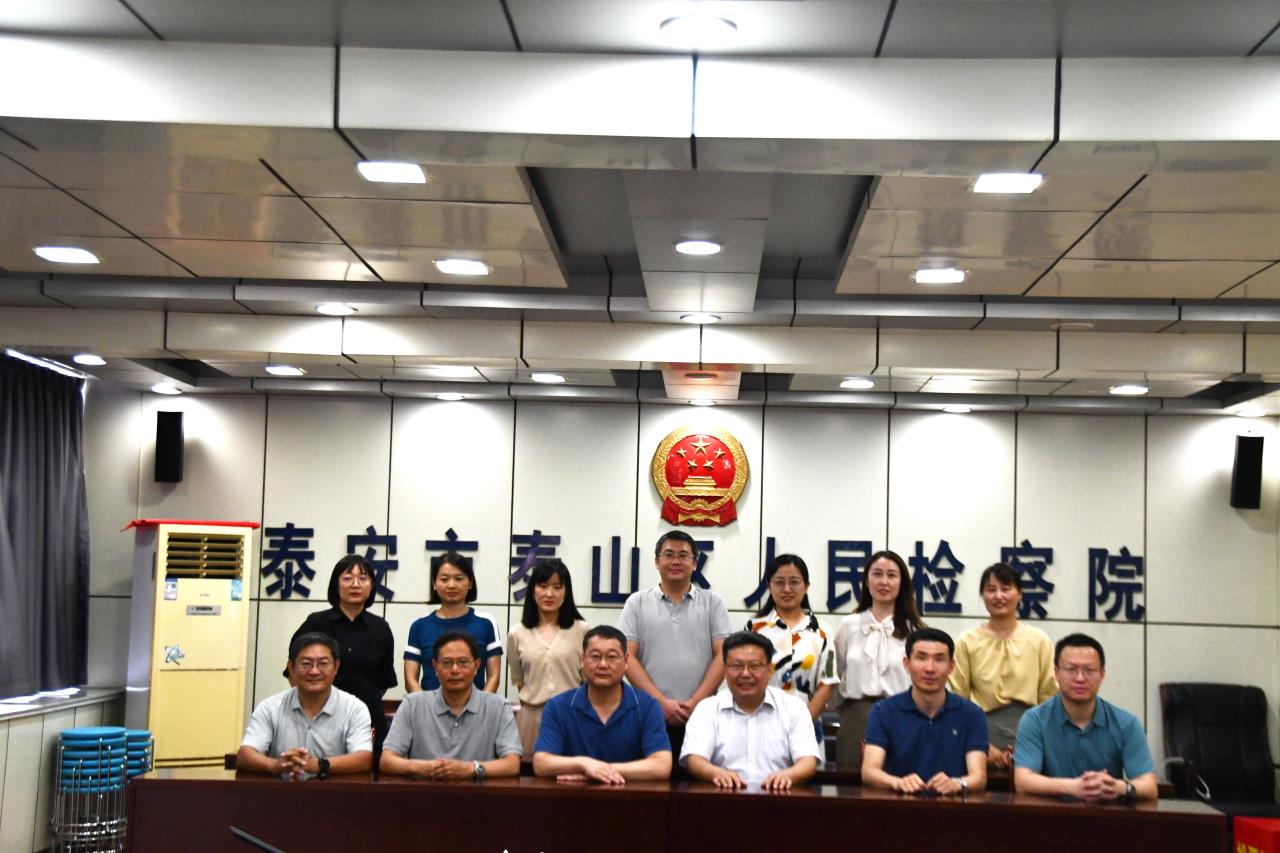 党委书记徐庆国,副书记、副院长李涛,团委书记刘晓娟,法学系张德军教授等部分教师代表赴泰安市泰山区人民检察院开展校地合作交流座谈活动,泰安市泰山区人民检察院检察长赵平原、副检察长沈志坚和检察院有关部门负责同志出席座谈会。