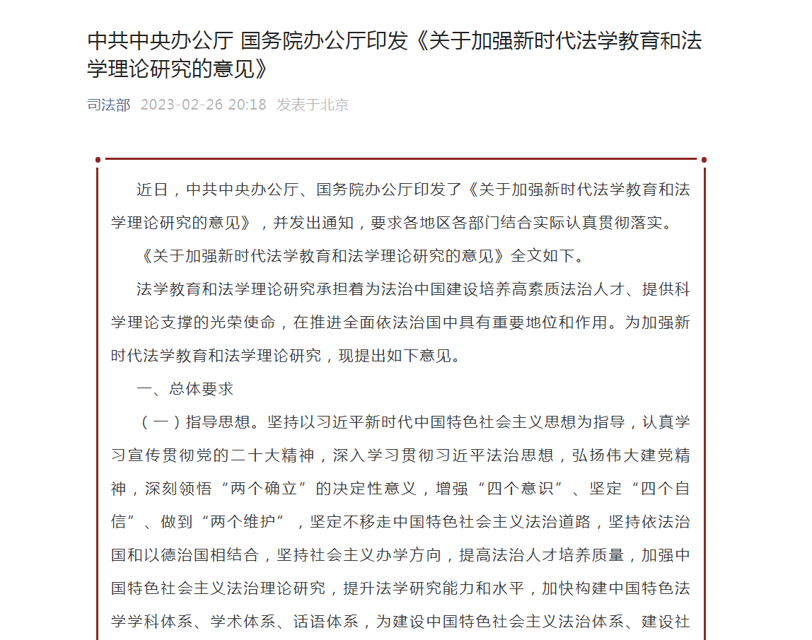 近日,中共中央办公厅、国务院办公厅印发《关于加强新时代法学教育和法学理论研究的意见》(以下简称《意见》)。为了更好学习落实贯彻《意见》,六合论坛
