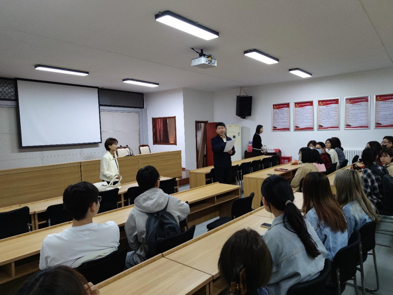 教务处副处长、行政管理专业负责人郝丽教授表示希望同学们可以在实习过程中增强青年责任感,培养青年人担当。同时鼓励大家在实践中使用自己的专业知识,奔向基层大舞台,为加强基层治理尽自己的一份力量。党建工作办公室副主任、团工委书记、青工委主任潘雅楠介绍了实习工作“十个一”工作要求,明确工作内容、工作目的、工作要求。学生代表燕枳妃表态发言,表示将会严格遵守工作纪律,虚心接受前辈指导,认真学习工作经验。