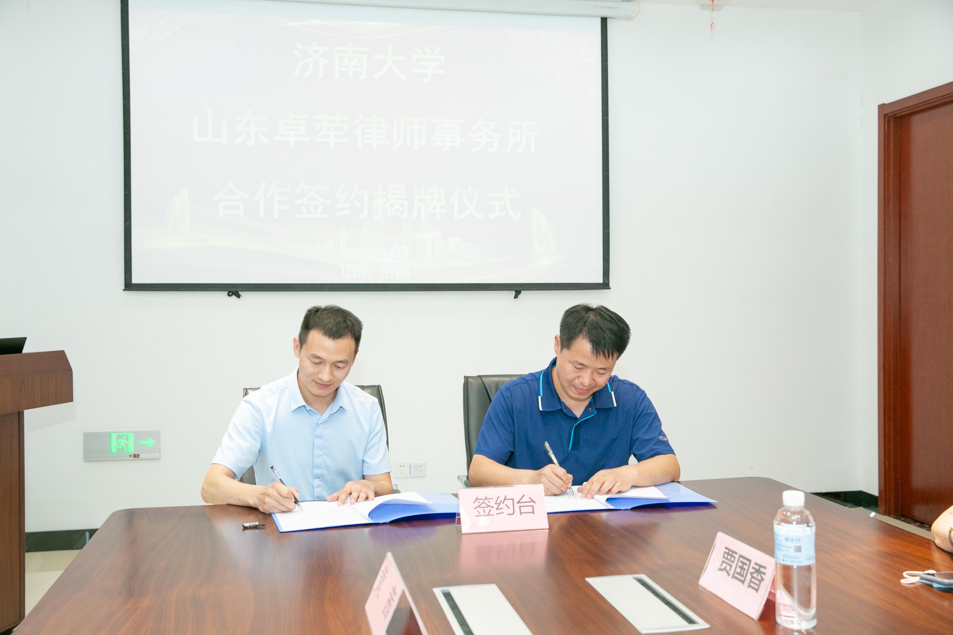 院长高功敬一行赴山东卓荦律师事务所开展校企合作签约揭牌活动,正处级组织员国迎春,党委副书记、副院长李涛,院长助理李秀凤,学生工作办公室主任黄茜,法学系教师代表汲磊一同出席活动。