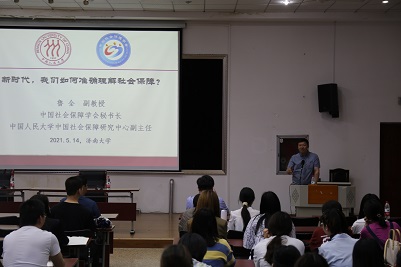 青龙山学术论坛暨党史学习教育专题辅导报告于5月14日成功举办,本次报告邀请中国社会保障研究中心副主任、中国社会保障学会秘书长、中国人民大学鲁全副教授作题为《新时代,我们如何准确理解社会保障?》的学术报告。报告会由六合论坛