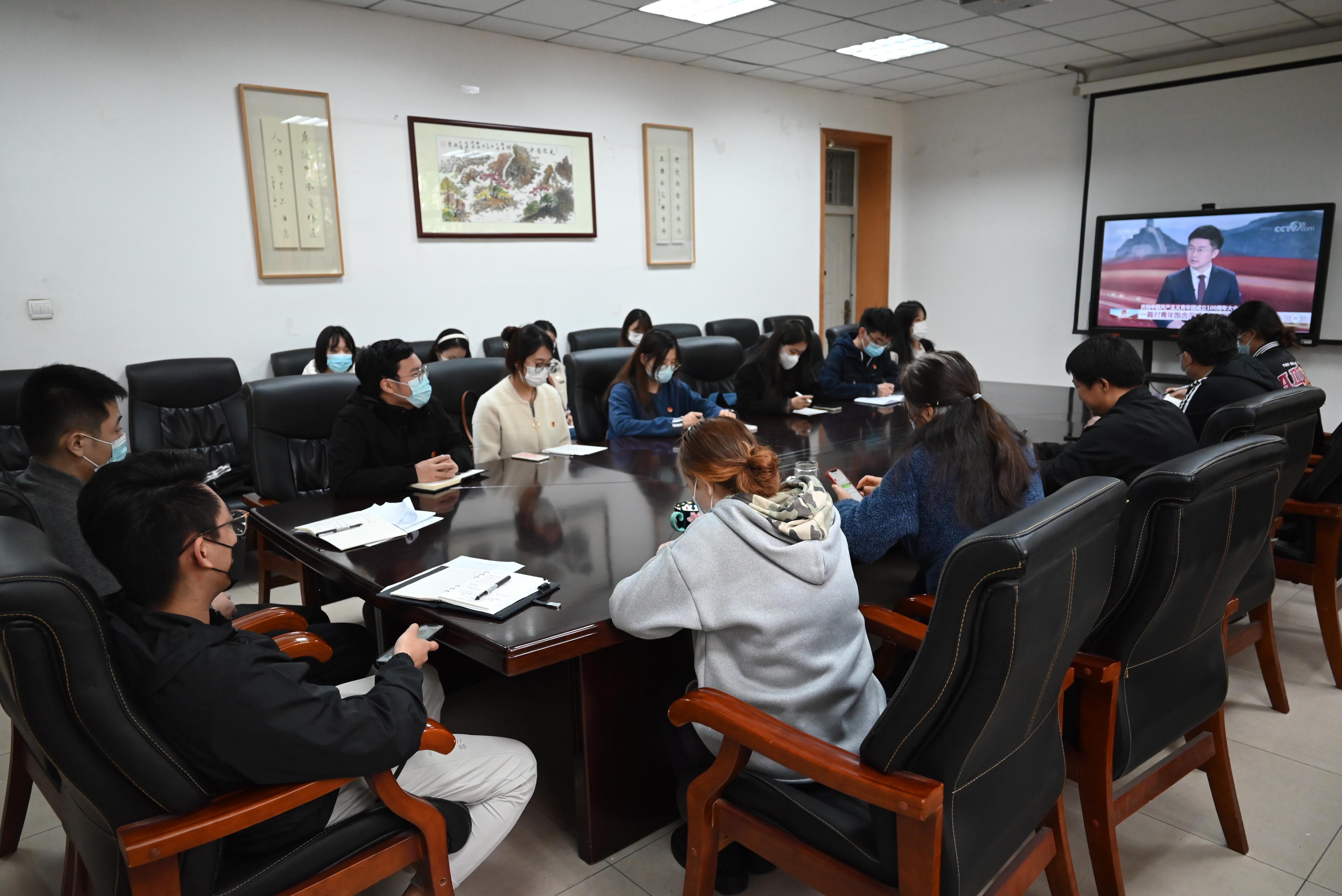 组织师生观看庆祝中国共产主义青年团成立100周年大会。六合论坛