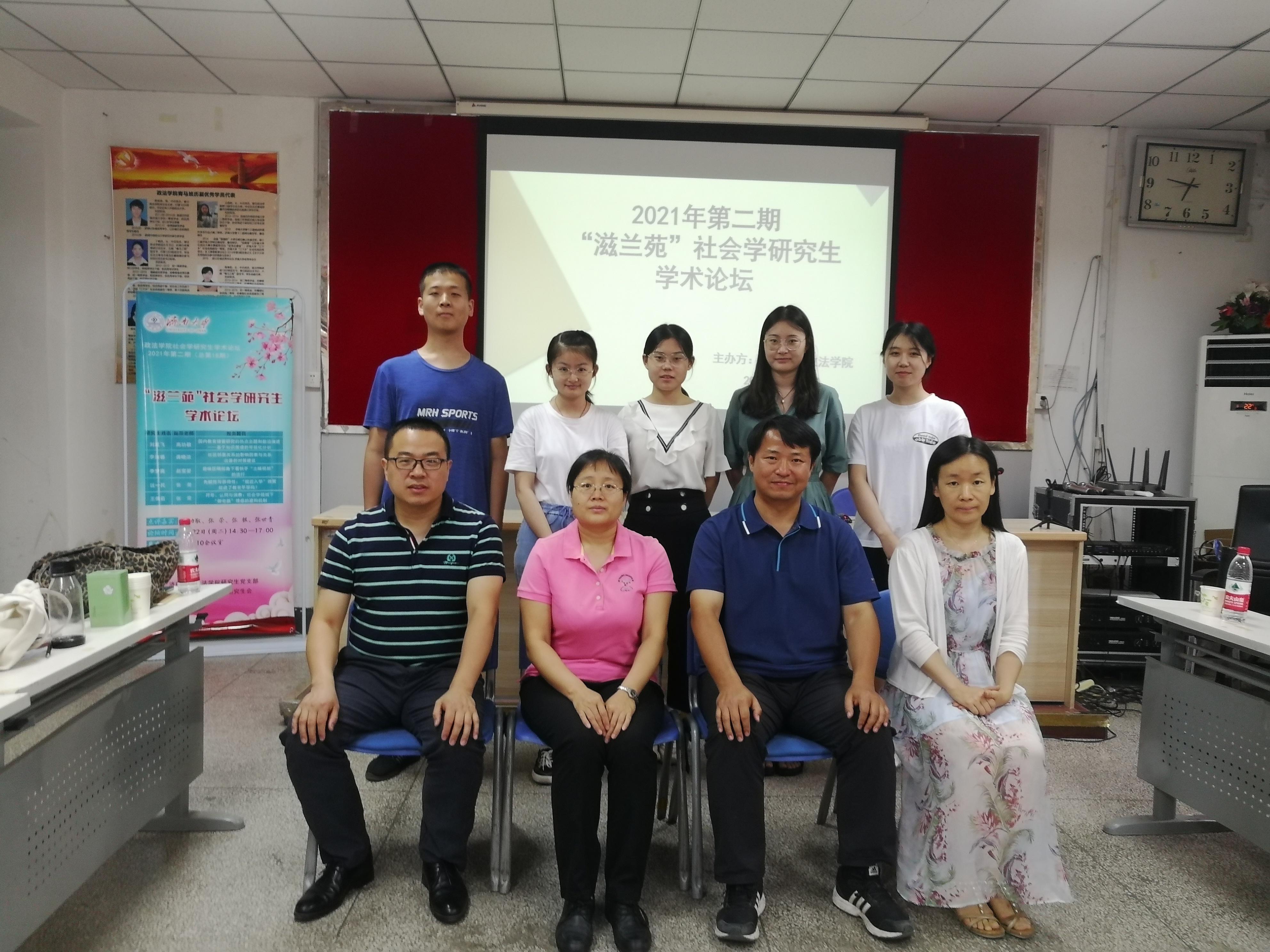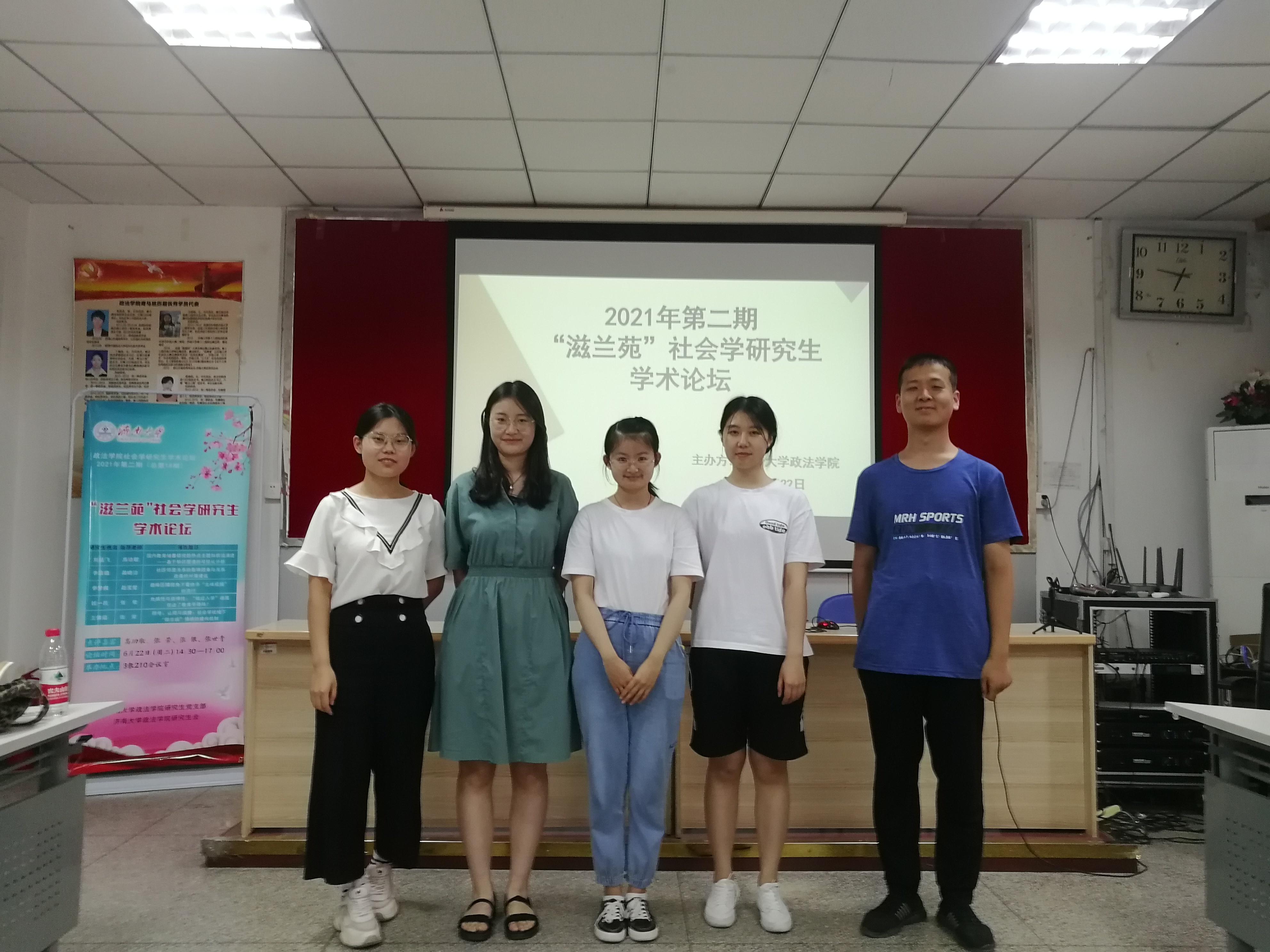 研究生党支部和研究生会于2021年6月22日下午在三教210会议室举办2021年第二期(总第18期)“滋兰苑”社会学研究生学术论坛。本次论坛邀请高功敬教授、张荣教授、张银副教授、张世青副教授做点评嘉宾,社会学全体研究生参加论坛,院研究生会竞赛部李佳鑫同学担任主持人。