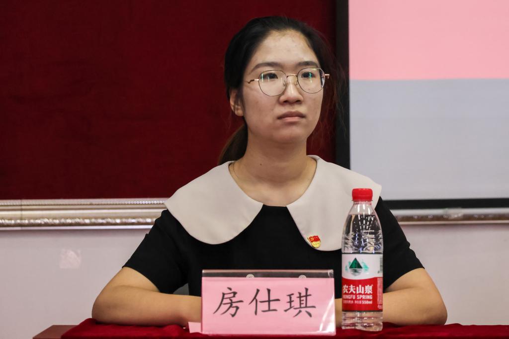 团委书记刘晓娟宣读新发展党员名单,与会领导、老师为预备党员代表佩戴了党徽,赠送《中国共产党章程》。全体新党员面向党旗站立,举起右手握拳,在法学学生第二党支部书记房仕琪同志的领誓下,进行了庄严宣誓。党员们昂首挺胸,在阵阵激昂的宣誓声下,每个党员均用心传递着他们昂然向上的斗志和报效祖国的决心。公共管理学生党支部党员骆凯霖代表新发展预备党员进行了发言,他讲述了自己入党前后的心路历程,充分展现了一名新党员的蓬勃生机与殷殷成长。并表示今后一定会加强理论学习,严格要求自己,坚决拥护“两个确立”,做到“两个维护”,增强四个意识,坚定四个自信,努力成为合格的中共党员。社会学研究生党支部书记王丹代表正式党员发言。她梳理了自己入党以来的成长与蜕变,真情抒发了一名老党员对党的忠诚之怀与对人民的热忱之心。并鼓励同志们自觉践行新思想,时刻牢记新使命,刻苦锻炼新本领,奋发展现新作为。