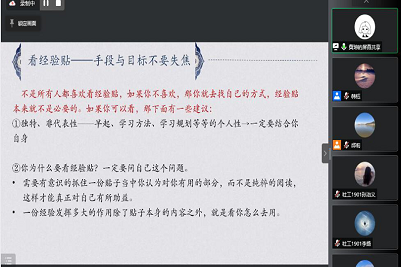 、华中科技大学、华东理工大学和西安交通大学录取,她们分别从考研计划制定、专业课和公共课复习、应试技巧、情绪和时间管理等方面,分享了自己的考研历程和心得体会。最后,邱莉老师对分享会进行了总结,提醒2019级同学要尽早锚定目标,学会利用专业优势链接资源,化解考研路上的焦虑情绪,避免择校反复不定和后期因焦虑而影响复习进程。韩钰老师对分享会进行了补充,强调了实习对于考研的重要意义,期待和鼓励同学们在实习和赛事中锻炼和提升专业能力、创新能力。
