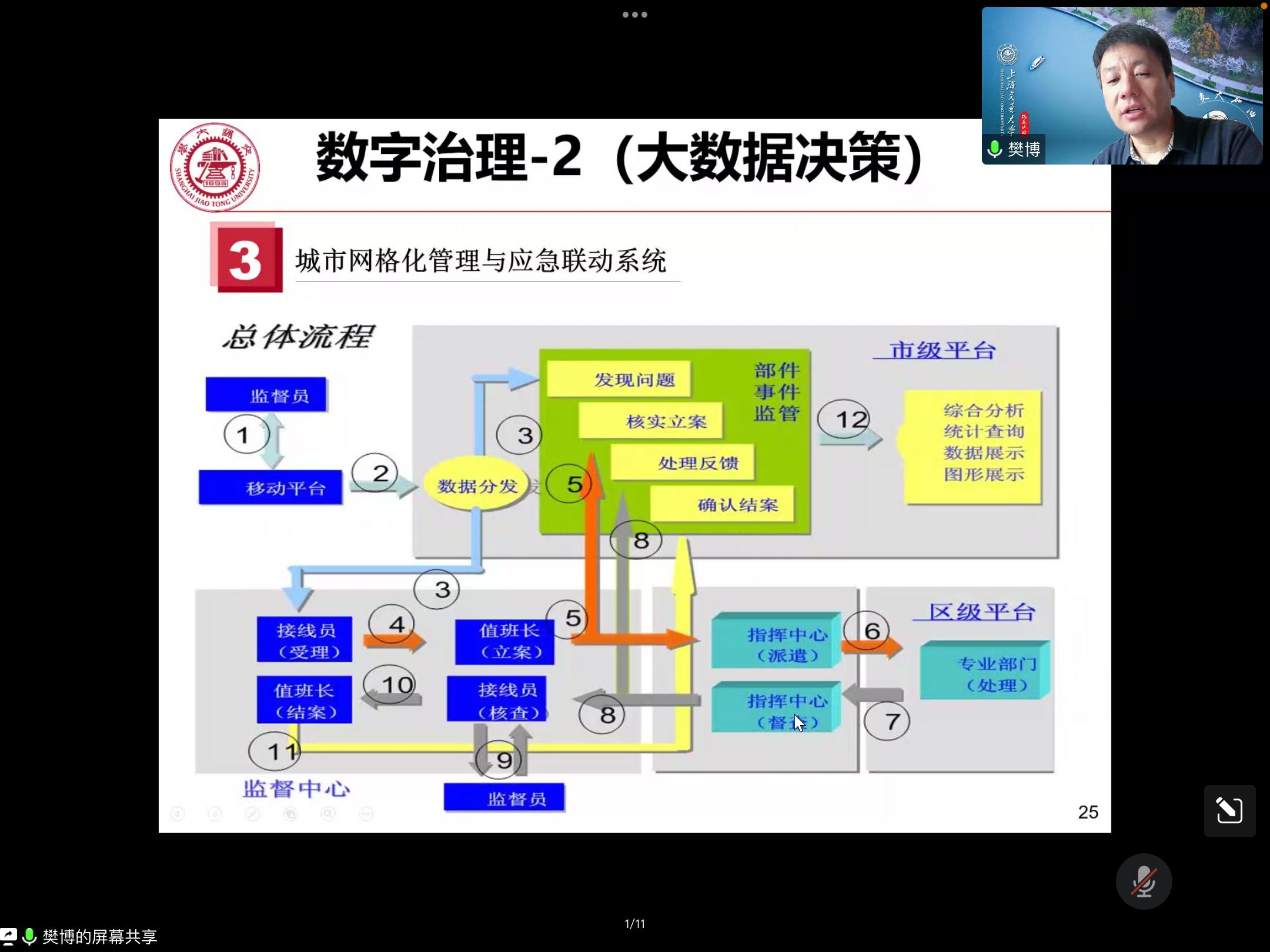 樊博教授认为时代为数字治理的学科发展提供了宝贵的发展窗口,我们需要抓住机遇,认真学习与研究,为社会发展做贡献。樊博教授认为,数字治理是公共管理研究的重要范畴,首先基于研究问题、研究理论创新及研究范式三个视角,对于公共管理研究及课程体系进行了系统解读;在此基础上,对公共管理的四大研究范式与数字治理的研究范式选择进行了系统阐释。随后,重点从定量研究范式与大数据研究范式视角出发,基于“无缝隙服务”和“大数据决策”两个维度对数字治理进行了重点解析。无缝隙服务方面,在政府组织结构扁平化趋势下,数字治理促进政府提供无缝隙服务,建立无缝隙政府能够为公民提供更加便利高效优质的服务。大数据决策方面,以城市网格化管理与应急联动系统为案例,深度分析了大数据如何协助完成数字治理。樊博教授认为,未来政府应利用好信息资源,做好大数据的分析和规律性总结,助力城市和基层治理。同时强调,未来的时代是数字化的时代,公共管理面临大数据处理限制以及研究范式转型等问题,公共管理学科要看齐时代发展、看齐数字技术的进步,不断优化创新研究课题与研究方法;公共管理学科的师生要迎难而上,为国家发展做出新思考和新贡献。