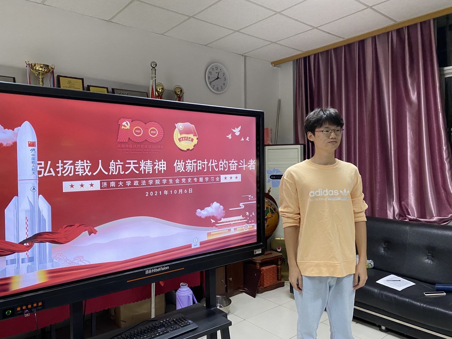 第一阶段,组织部负责人王雪晗围绕“神舟十二号飞行任务圆满成功”、“中国航天事业的发展史”、“载人航天精神贵在‘特别’”、“载人航天精神激励我们笃定前行”四个方面对载人航天精神进行了细致的讲解。她呼吁大家积极弘扬载人航天精神,在学习生活中锐意进取、攻坚克难、团结协作、拼搏奉献,推动中国人探索太空的脚步迈得更大更远。