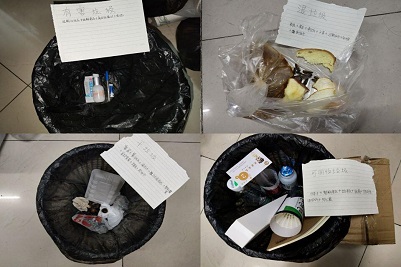 活动前期,志愿者们进行了充分的准备工作,接着在QQ平台进行广泛宣传。这次垃圾分类活动分为线上线下两种形式,线上提交照片,线下将垃圾回收起来,后期变废为宝。参加活动的同学需要将垃圾分为有害垃圾,可回收垃圾,干垃圾,湿垃圾四类,并贴好标签拍照发送到指定邮箱。在线下活动中将可回收垃圾送到指定位置,后期变废为宝。活动的最后阶段,由非参与者组成评比小组,将征集作品按照正确比率评比出4至6位优秀者,进行拍照展示,此次活动完美结束。经过这次“垃圾分类”活动的锻炼,同学们初步掌握了一些关于垃圾分类的知识,同时也将垃圾分类由理念转变为了实践。