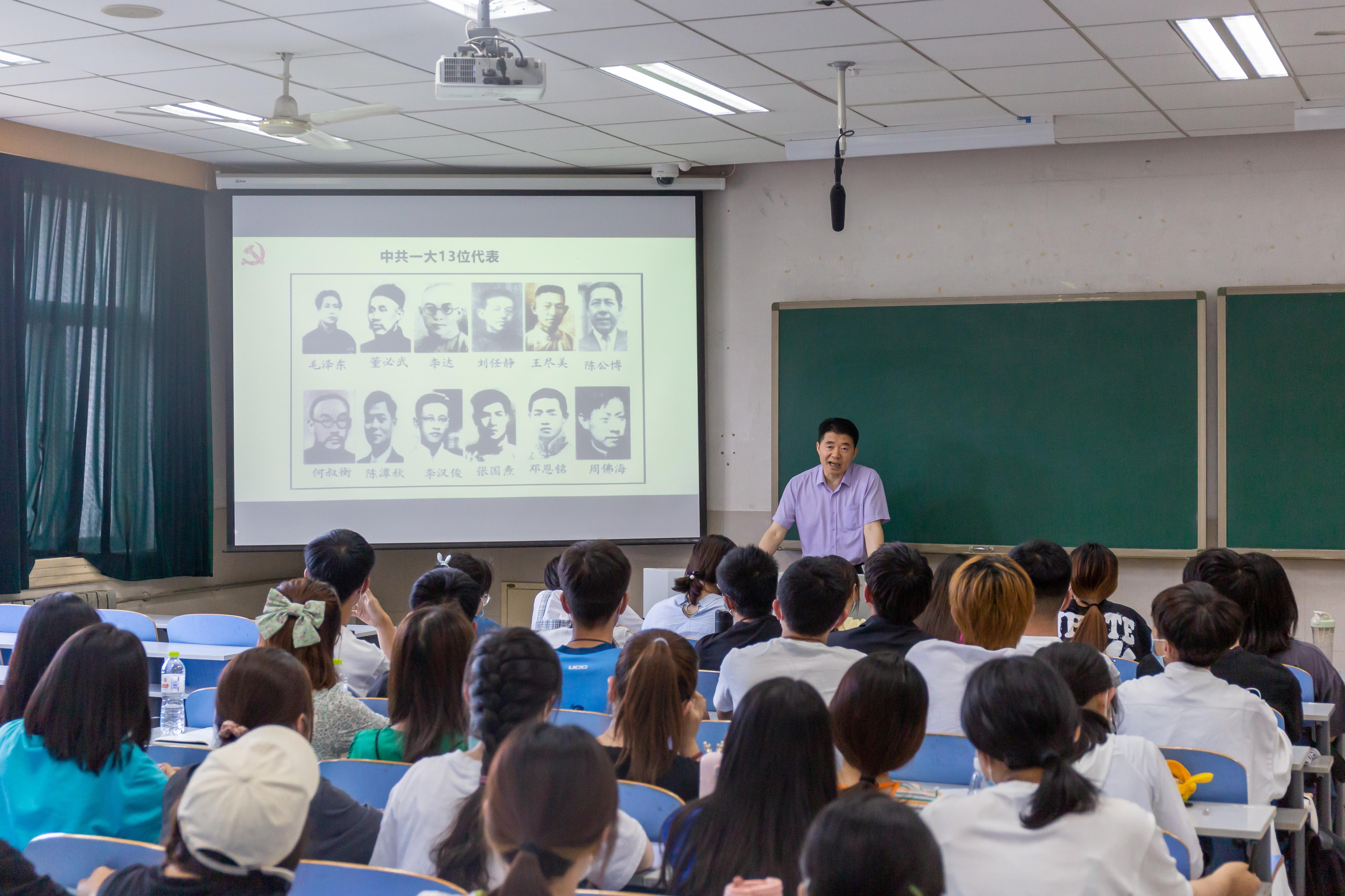 续铁书记首先从中国共产党成立的历史背景切入,通过三个问题引发探讨,即马克思主义为什么“行”、社会主义为什么“好”、中国共产党为什么“能”。随后,续铁书记向同学们详细介绍了“一大”召开情况以及“一大”召开的重大历史意义,并且从“一大”13名代表的人生道路及毛泽东等同志的事迹中教导同学们要坚定理想信念,强化党性观念,培养高强本领,善作结合文章,创造性开展工作。最后,续铁书记向同学们提出要树立当代青年的使命担当,争做有理想、有情怀、有本领、有担当、有纪律的堪当大任的时代青年。